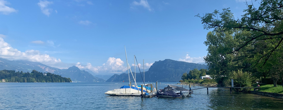 Hat man sich mal vom See hoch zum Aussichtspunkt gekämpft - und ja ich meine "kämpfen" denn die Stufen hoch zum Aussichtspunkt treiben doch schon ziemlich den Puls nach oben - kann man zum einen zum Hausberg "Pilatus" schauen oder aber den Blick über den See und die Berge in der Ferne schweifen lassen.